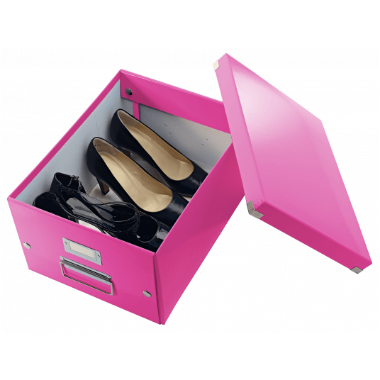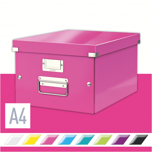 Średniej wielkości uniwersalne pudełko do przechowywania lub przenoszenia przedmiotów w formatach do A4. - szybkie i łatwe składanie/rozkładanie dzięki konstrukcji spinanej na napy (umożliwia redukcję powierzchni potrzebnej do przechowywania, kiedy pudełko nie jest używane) - laminowana powierzchnia gwarantuje wspaniały wygląd, dłuższą żywotność produktu oraz łatwość usuwania zabrudzeń - możliwość łatwego opisu zawartości dzięki wysokiej jakości metalowym ramkom na etykiety i białym etykietom - wytrzymałe metalowe uchwyty do wygodnego przenoszenia pudła - wykonane z wysokiej jakości wytrzymałego kartonu - opatentowana konstrukcja zapewnia dodatkową ochronę przed przypadkowym otwarciem pudełka z cięższą zawartością - wymiary: 281 x 200 x 370 mm - kolor: różowy metaliczny.