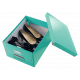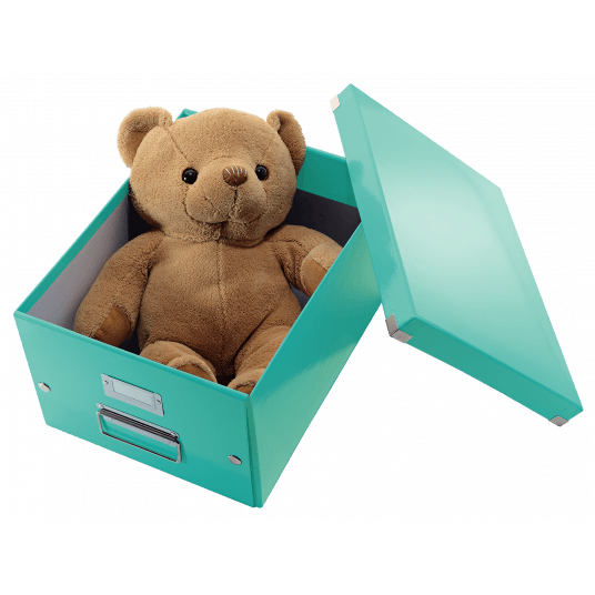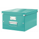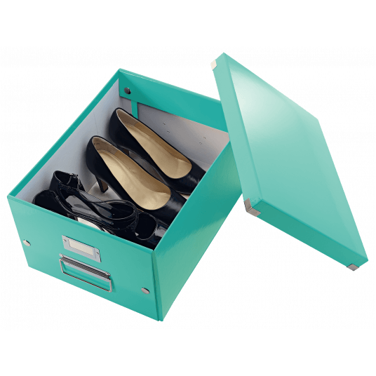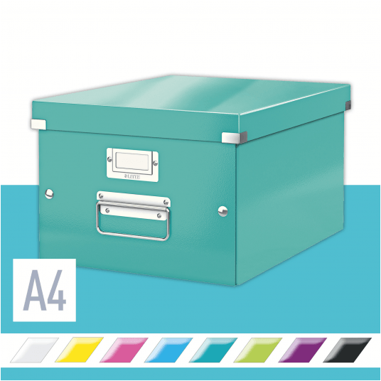 Średniej wielkości uniwersalne pudełko do przechowywania lub przenoszenia przedmiotów w formatach do A4. - szybkie i łatwe składanie/rozkładanie dzięki konstrukcji spinanej na napy (umożliwia redukcję powierzchni potrzebnej do przechowywania, kiedy pudełko nie jest używane) - laminowana powierzchnia gwarantuje wspaniały wygląd, dłuższą żywotność produktu oraz łatwość usuwania zabrudzeń - możliwość łatwego opisu zawartości dzięki wysokiej jakości metalowym ramkom na etykiety i białym etykietom - wytrzymałe metalowe uchwyty do wygodnego przenoszenia pudła - wykonane z wysokiej jakości wytrzymałego kartonu - opatentowana konstrukcja zapewnia dodatkową ochronę przed przypadkowym otwarciem pudełka z cięższą zawartością - wymiary: 281 x 200 x 370 mm - kolor: turkusowy metaliczny.
