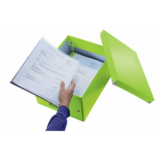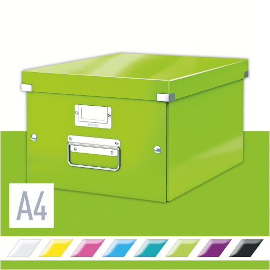 Średniej wielkości uniwersalne pudełko do przechowywania lub przenoszenia przedmiotów w formatach do A4. - szybkie i łatwe składanie/rozkładanie dzięki konstrukcji spinanej na napy (umożliwia redukcję powierzchni potrzebnej do przechowywania, kiedy pudełko nie jest używane) - laminowana powierzchnia gwarantuje wspaniały wygląd, dłuższą żywotność produktu oraz łatwość usuwania zabrudzeń - możliwość łatwego opisu zawartości dzięki wysokiej jakości metalowym ramkom na etykiety i białym etykietom - wytrzymałe metalowe uchwyty do wygodnego przenoszenia pudła - wykonane z wysokiej jakości wytrzymałego kartonu - opatentowana konstrukcja zapewnia dodatkową ochronę przed przypadkowym otwarciem pudełka z cięższą zawartością - wymiary: 281 x 200 x 370 mm - kolor: zielony metaliczny.