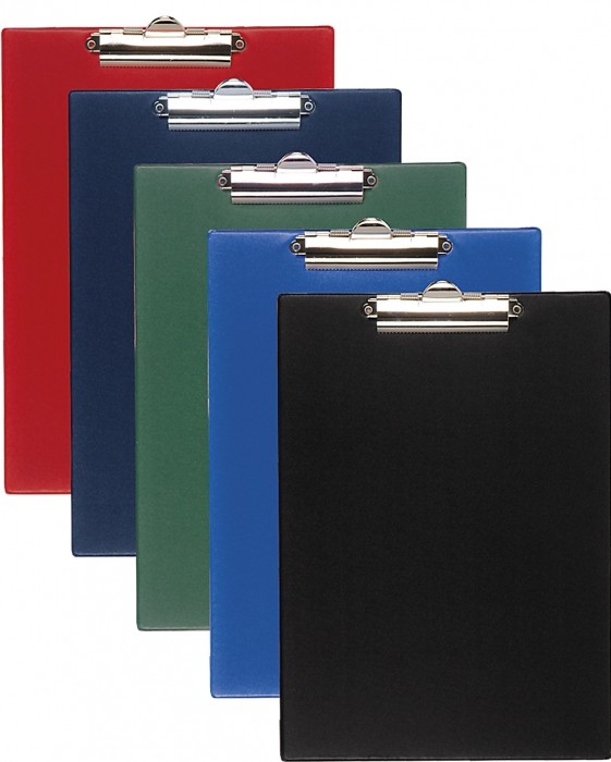 Sztywna podkładka wykonana z bardzo lekkiej tektury oblewanej ekologiczną folią PVC. - wyposażona w klip zaciskowy ząbkowany - na wewnętrznej stronie okładka posiada kieszeń z folii przezroczystej oraz miejsce na długopis - do zapisywania notatek - pojemność 100 kartek - format A5