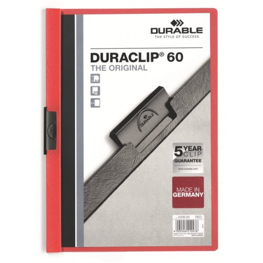- skoroszyty A4 umożliwiające przechowywanie dokumentów bez potrzeby dziurkowania - zacisk wykonany ze specjalnej elastycznej stali - posiadają 5-letnią gwarancję na siłę docisku - przezroczysta okładka - pojemność: Duraclip 60 - 60 kartek