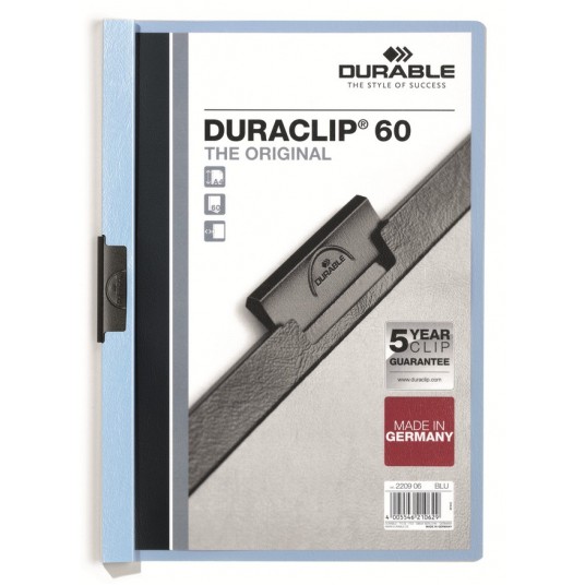 - skoroszyty A4 umożliwiające przechowywanie dokumentów bez potrzeby dziurkowania - zacisk wykonany ze specjalnej elastycznej stali - posiadają 5-letnią gwarancję na siłę docisku - przezroczysta okładka - pojemność: Duraclip 60 - 60 kartek