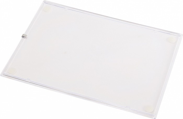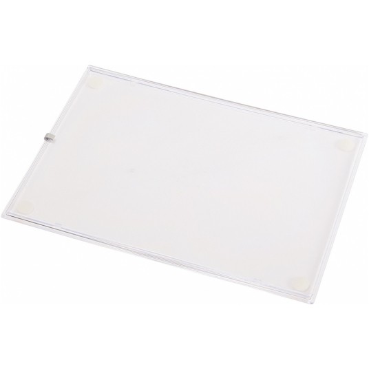Tabliczka samoprzylepna wykonana z wysokoprzezroczystego tworzywa. - łatwy montaż i wymiana kartki - posiada w komplecie taśmę samoprzylepną - możliwość zamówienia dodatkowych mocowań: magnesu, zawieszki lub przyssawki - wymiar 150x230 mm