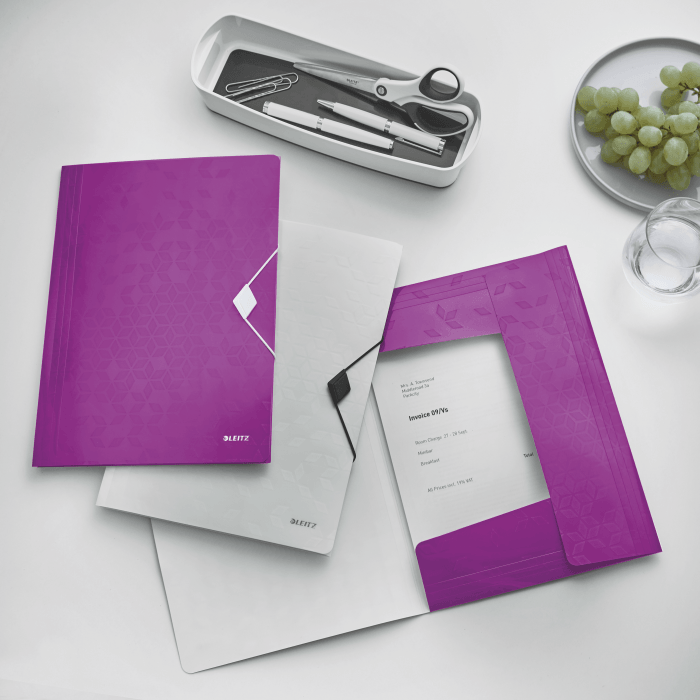Wysokiej jakości teczka z polipropylenu w żywych kolorach WOW z dwubarwnym wykończeniem.