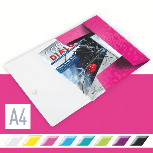 Wysokiej jakości teczka z polipropylenu w żywych kolorach WOW z dwubarwnym wykończeniem.