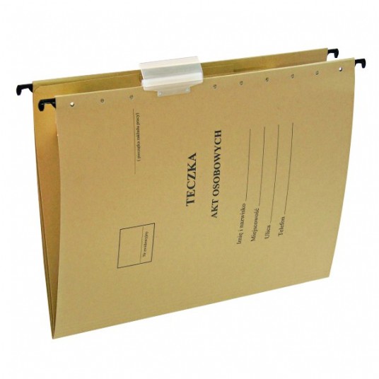 - siarczanowa - wykonana z mocnego kartonu 230 g/m2 - przeznaczona do przechowywania akt osobowych - wewnątrz 3 przegródki do zachowania standardowego podziału dokumentów z przebiegu kariery pracownika: przyjęcie do pracy, rozwój, zakończenie pracy - w każdej przegródce mechanizm skoroszytowy umożliwiający wpięcie dokumentów (luźnych kartek lub dokumentów w koszulkach) - w komplecie identyfikatory i etykiety do opisu zawartości każdej teczki - format: A4