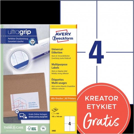 Etykiety uniwersalne Avery Zweckform Ultragrip 105 x 148 mm