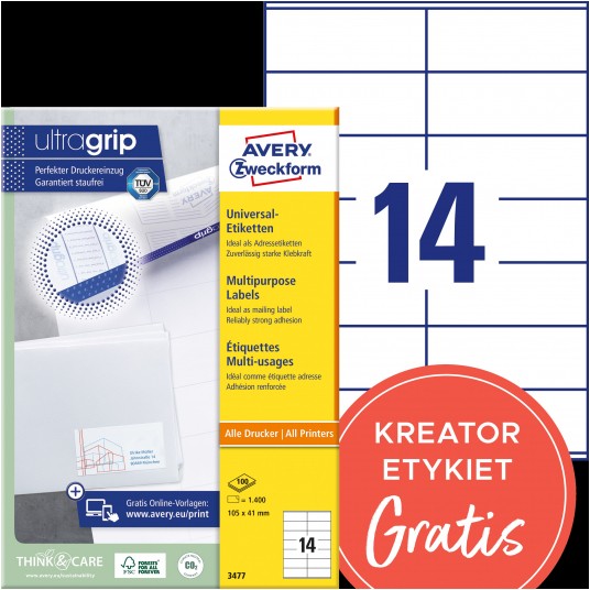 Etykiety uniwersalne Avery Zweckform Ultragrip 105 x 41 mm