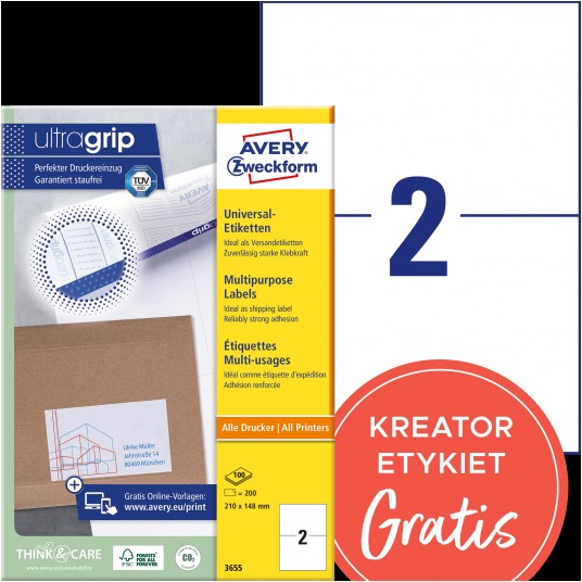 Trwałe etykiety uniwersalne Avery• Etykiety papierowe do wszechstronnych zastosowań. Idealne do adresowania kopert i przesyłek pocztowych, oznaczania dokumentów, produktów i wielu innych zadań.