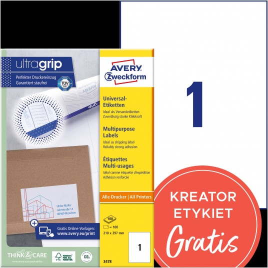 Etykiety uniwersalne Avery Zweckform Ultragrip 210 x 297 mm
