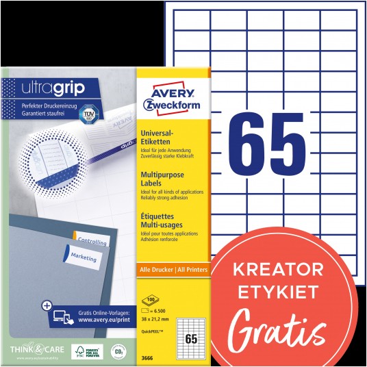 • Produkcja etykiet Avery Zweckform jest neutralna pod względem emisji CO2 (certyfikat Focus Future) i zgodna ze standardem ISO14001, który pomaga zminimalizować negatywne czynniki oddziałujące na środowisko naturalne.
