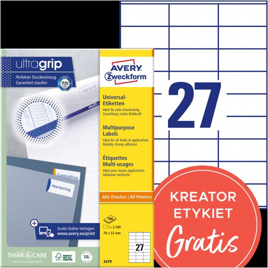 Etykiety uniwersalne Avery Zweckform Ultragrip 70 x 32 mm