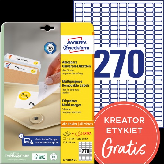 • Produkcja etykiet Avery Zweckform jest neutralna pod względem emisji CO2 (certyfikat Focus Future) i zgodna ze standardem ISO14001, który pomaga zminimalizować negatywne czynniki oddziałujące na środowisko naturalne.