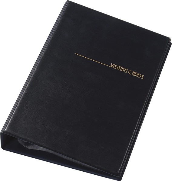 Wizytownik wykonany ze skóropodobnego winylu. - zawiera 9 koszulek z indeksem i 16 bez indeksu, wpinanych w ring 4R - wymienny wkład - pojemność 200 wizytówek