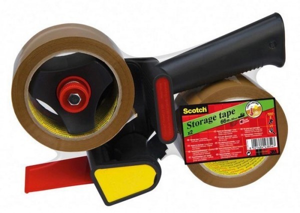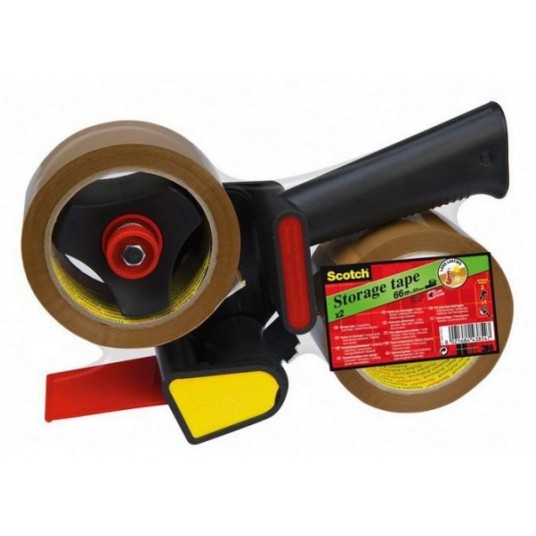 Opakowanie zawiera 2 rolki brązowej taśmy akrylowej Scotch® w rozmiarze 50mm x 66m w zestawie z podajnikiem Scotch® HE180.