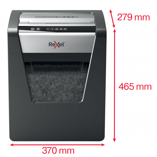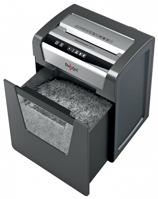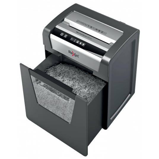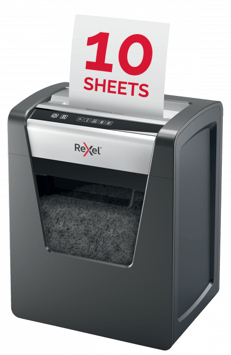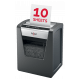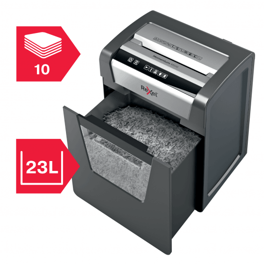 Niszczy do 10 kartek jednocześnie. Najwyższy poziom bezpieczeństwa: P5 Tnie na ścinki o wymiarach 2 x 15 mm. Może pracować nieprzerwalnie przez 2 godziny. Duży 23 litrowy pojemnik na ścinki pomieści do 250 kartek A4