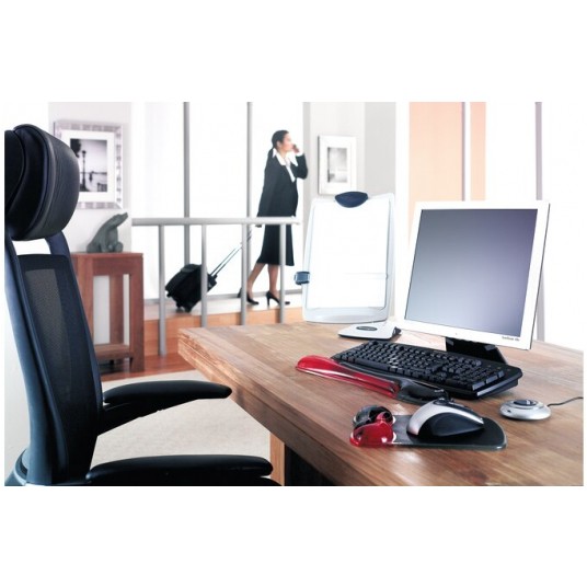 Podkładka Duo Gel składa się z trwałej winylowej podkładki zapewniającej szybkie i precyzyjne ruchy myszy oraz podpórki pod nadgarstek, która dopasowuje się do kształtu nadgarstka użytkownika, dopełniając tym komfort użytkowania.