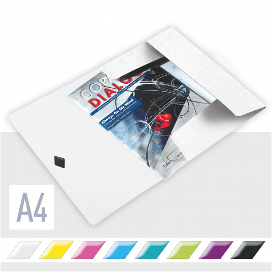 Wysokiej jakości teczka z polipropylenu w żywych kolorach WOW z dwubarwnym wykończeniem.