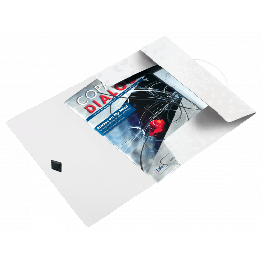 - mieści się w teczce z gumką o grzbiecie 30 mm, w pojemniku na czasopisma i na półce na dokumenty
