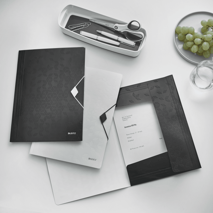 - ozdobne zamknięcie na gumkę zabezpiecza dokumenty podczas przenoszenia