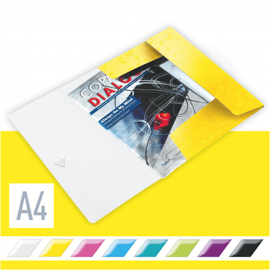 Wysokiej jakości teczka z polipropylenu w żywych kolorach WOW z dwubarwnym wykończeniem.