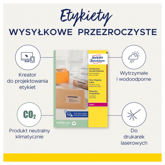 Etykiety wysyłkowe Avery Zweckform do drukarek laserowych 210 x 297 mm przeroczyste