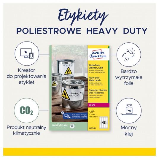 Trwałe etykiety Avery Zweckform Heavy Duty 210 x 297 mm białe