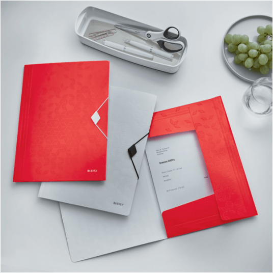 Wysokiej jakości teczka z polipropylenu w żywych kolorach WOW z dwubarwnym wykończeniem.