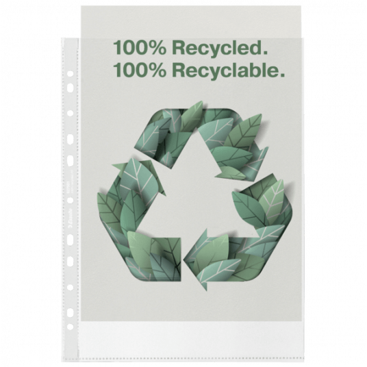 - Ekologiczna koszulka na dokumenty A4 do codziennego użytku, wykonana z bardzo mocnego PP w 100% pochodzącego z recyklingu. - Pasek z multiperforacją umożliwia wygodne przechowywanie dokumentów we wszystkich rodzajach segregatorów. - Cały produkt można ponownie wykorzystać i poddać recyklingowi. - Jest zapakowany w kartonowe pudełko, które również pochodzi w 100% z recyklingu i nadaje się do ponownego przetworzenia. - Wyprodukowano w Europie. - Zawartość pochodząca z recyklingu potwierdzona przez certyfikat UL. - Bardzo wytrzymały PP 100 mikronów. - Pudełko zawiera 50 sztuk.
